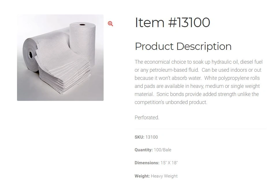 Absorbents Midwest Spill Absorbent Pad Oil Products Only